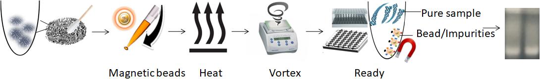 指紋或脫落細(xì)胞DNA,是從脫落的皮膚細(xì)胞和物理接觸過程中遺留在物體表面的其他生物材料中獲得的。這種類型的DNA檢樣在法醫(yī)調(diào)查中可能很有用,但指紋樣本DNA提取可能會(huì)有一些難題。主要問題之一是,使用傳統(tǒng)的DNA提取方法,只有相對(duì)較低比例的指紋脫落細(xì)胞核酸被成功擴(kuò)增和分型,核酸丟失率較高。且這些方法通常涉及耗時(shí)的多步驟過程,可能造成DNA完整性差,并導(dǎo)致DNA大量丟失等問題。此外,傳統(tǒng)方法也可能需要使用有毒的有機(jī)溶劑。為了克服這些難題,Bioclone開發(fā)出了一種新型的一步法指紋DNA純化方法,BcMag? 一步法指紋DNA純化試劑盒,利用負(fù)相核酸提取磁珠,可以快速捕獲并去除細(xì)胞裂解物中的雜質(zhì),使DNA不受影響。該方法旨在快速,高效且易于使用,將DNA丟失或提取緩沖液中化學(xué)物質(zhì)殘留的風(fēng)險(xiǎn)降低到最小。它只需要一個(gè)試管,不需要液體轉(zhuǎn)移,也不需要載體RNA,可以在不到30分鐘的時(shí)間內(nèi)快速處理數(shù)百個(gè)樣品,且無需昂貴的設(shè)備。這種一步法純化系統(tǒng)被認(rèn)為是解決傳統(tǒng)指紋DNA純化方法相關(guān)問題的革命性方法。