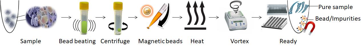 提取真菌和酵母DNA的標(biāo)準(zhǔn)流程可能非常耗時(shí)且需要大量手動(dòng)操作。在真菌和酵母菌基因分型等特定應(yīng)用中需要較長的DNA鏈提取方法。例如,傳統(tǒng)的真菌和酵母DNA提取需要用蛋白酶K消化4小時(shí)至過夜,然后進(jìn)行苯酚:氯仿提取和酒精沉淀。其他技術(shù),例如二氧化硅結(jié)合和洗脫試劑盒,近些年已經(jīng)非常成熟。這些技術(shù)基于陽性色譜純化選擇。高濃度的鹽溶液(例如鹽酸胍)會(huì)將DNA與二氧化硅結(jié)合。核酸結(jié)合后,用鹽/乙醇溶液洗滌二氧化硅離心柱或磁珠,以清除樣品中的其他生物分子。最后,使用Tris洗脫緩沖液或水洗脫離心柱或磁珠以洗脫純化后DNA。這種結(jié)合-清洗-洗脫過程非常耗時(shí),需要多次清洗和移液步驟。重復(fù)的移液步驟會(huì)導(dǎo)致相當(dāng)大的DNA損失(20-40%)和丟失。此外,高鹽溶液和其他雜質(zhì)很容易殘留進(jìn)洗脫的DNA或RNA中,損害最終的純度和定量以及下游的酶活性,如PCR。