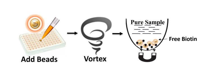 使用磁珠快速有效地從樣品中去除游離生物素的操作非常簡單。