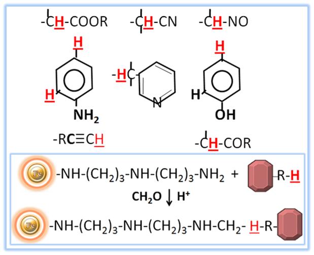 對(duì)于缺乏易反應(yīng)官能團(tuán)的分子,使用傳統(tǒng)方法固定可能很困難。特別是某些藥物,類(lèi)固醇,染料和其他小化學(xué)分子通常具有缺乏用于固定的適當(dāng)反應(yīng)基團(tuán)的結(jié)構(gòu)。其他化合物具有低反應(yīng)性官能團(tuán)或被空間抑制。然而,其中一些化合物含有活性(或可替代)氫,可以使用曼尼希方法與甲醛和胺縮合。