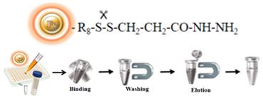 · 特異性的固定反應(yīng)------酰肼基活化磁珠僅會與,已被高碘酸鹽(例如唾液酸)輕度氧化的,含有糖基的純糖蛋白結(jié)合。