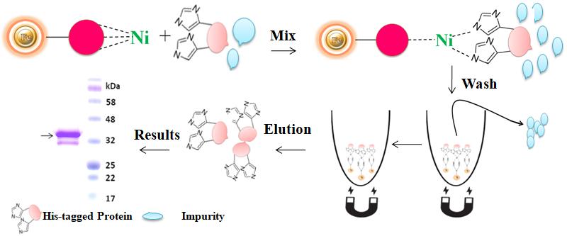 此外,這些螯合劑主要固定在傳統(tǒng)的親和色譜基質(zhì)上,如瓊脂糖樹(shù)脂或色譜柱。這些固體基質(zhì)使純化過(guò)程繁瑣,耗時(shí),無(wú)法處理非常微小的樣品,并且難以適應(yīng)自動(dòng)化系統(tǒng)。Bioclone推出了一種功能強(qiáng)大的基于磁珠的IMAC系統(tǒng)來(lái)解決這些問(wèn)題。