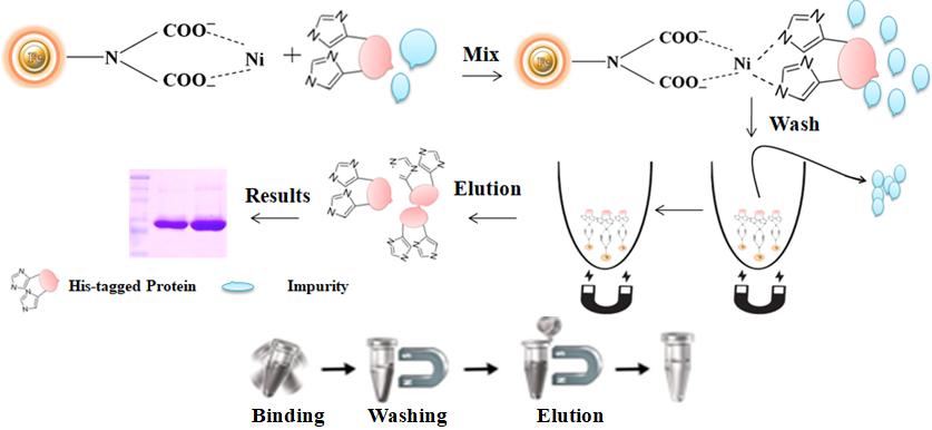 盡管IMAC是一種非常有效的蛋白質(zhì)純化技術(shù),但這種技術(shù)主要用于傳統(tǒng)的親和層析基質(zhì),如瓊脂糖樹脂或純化柱。使用這些固體基質(zhì)進(jìn)行純化過程非常繁瑣、耗時(shí),無法處理體積非常微小的樣品,并且難以適應(yīng)自動(dòng)化系統(tǒng)。因此,我們研發(fā)出了一種非常有效的磁珠IMAC分離產(chǎn)品來克服這些限制。
